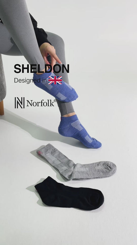 Norfolk Sheldon Merinos yünlü, hafif yürüyüş çorabımız, sıcak havalarda uzun saatler süren yürüyüşlerde bile ayaklarınızın serin ve kuru kalmasını sağlamak için nefes alabilirlik ve rahatlık sağlayacak şekilde tasarlanmıştır.