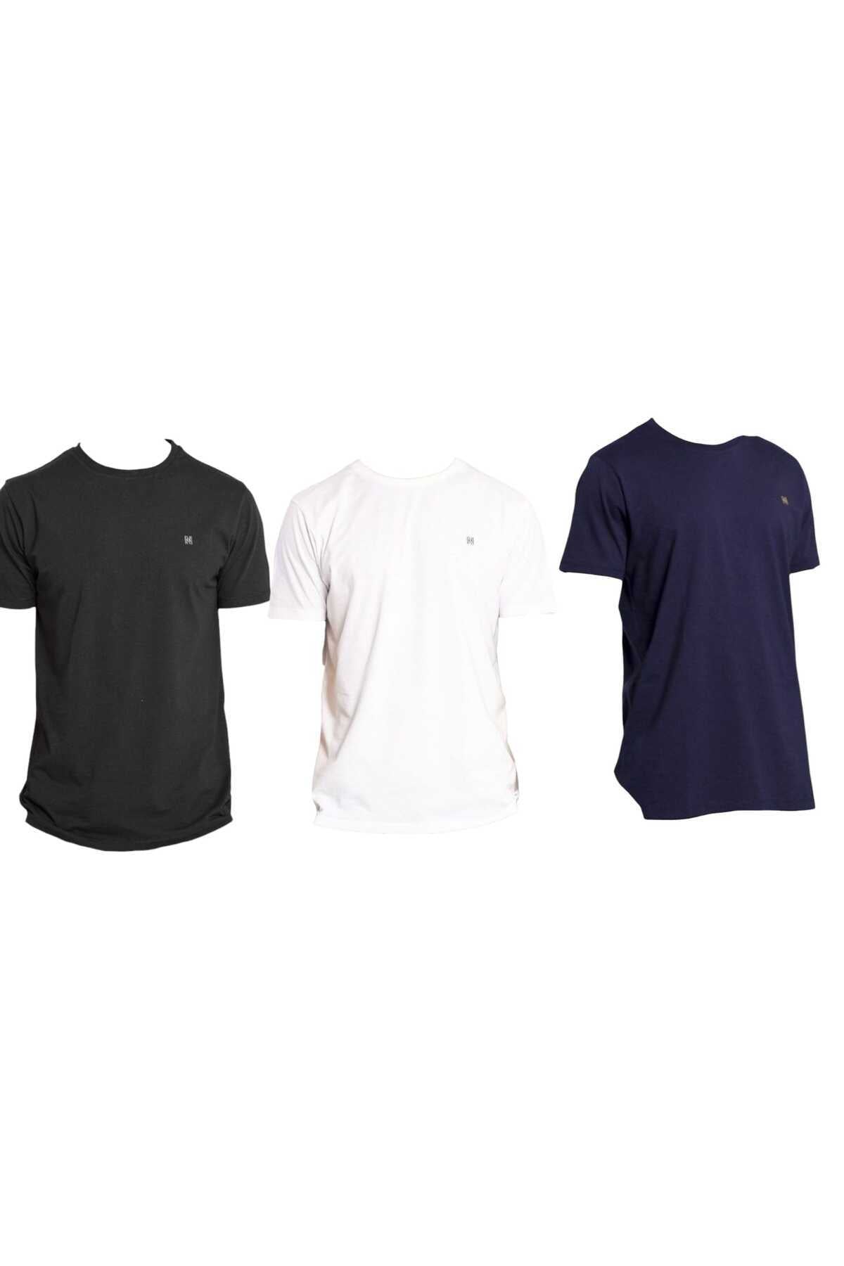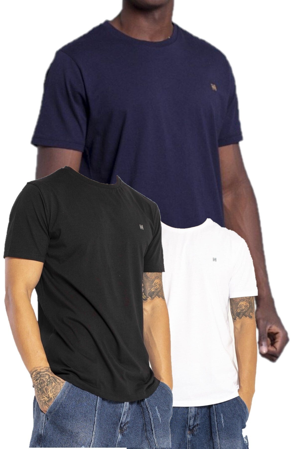 VIGO 3'lü Erkek %100 Pamuk Oval Kesim Bisiklet Yaka Basic Tişört (Beyaz-Lacivert-Siyah)