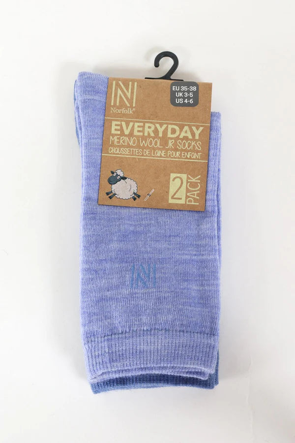 Helsinki İnce Örgü Merinos Yünü Günlük Çocuk Çorabı 2'li Paket Mavi