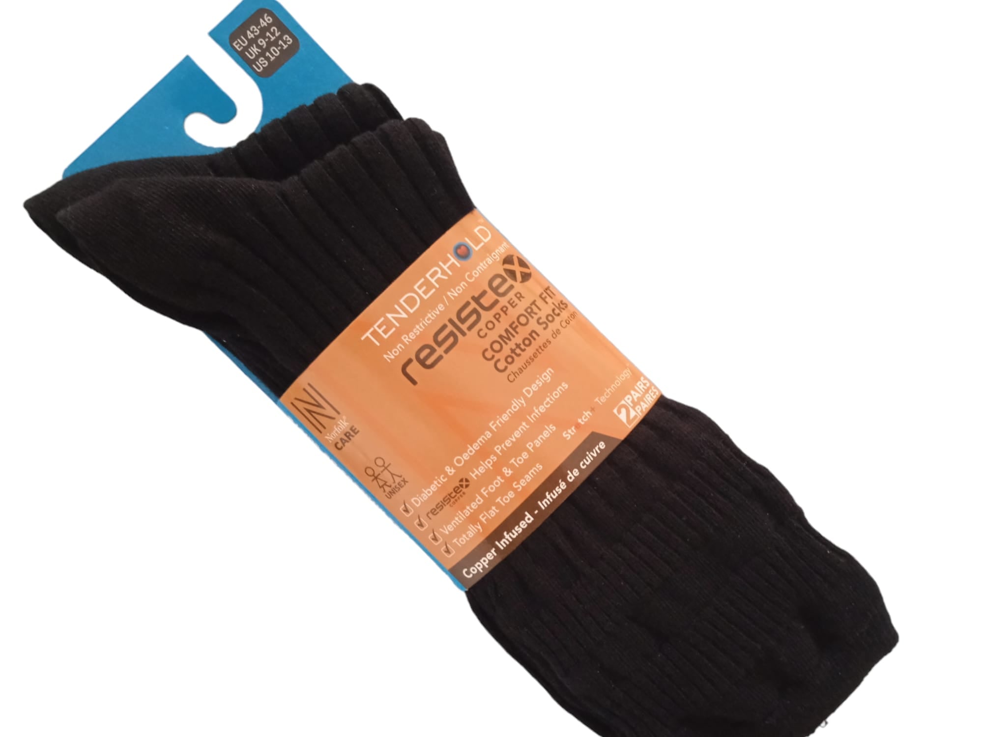Yenilikçi tasarımın diyabetik hassasiyeti olanlar için benzersiz konforla buluştuğu Norfolk'un 'Resistex Copper Infused' Comfort Fit Pamuklu Diyabetik Çoraplarıyla tanışın. Özenle ve hassasiyetle tasarlanan bu çoraplar, sizin sağlığınıza olan bağlılığımızı sergiliyor.